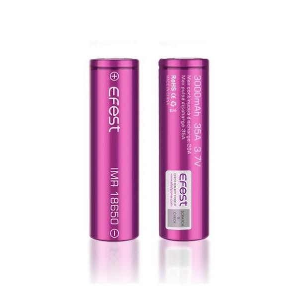 Μπαταρία 18650 με χωρητικότητα 3000mAh στα 35Α από την Efest. Χάρη στη μεγάλη της χωρητικότητα είναι ιδανική για συνθέσεις υπό του Ohm για μεγαλύτερη διάρκεια ζωής της μπαταρίας.