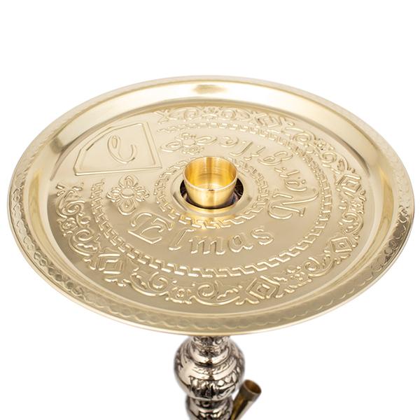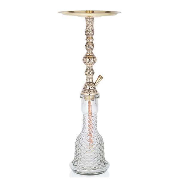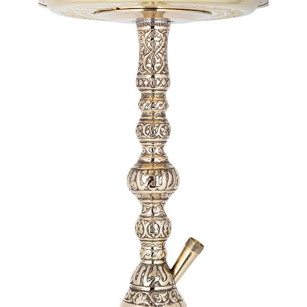 Η στήλη καπνού από ορείχαλκο είναι πολύ συμπαγής και διακοσμημένη με ανατολίτικα σχέδια. ο σωλήνας βύθισης είναι κατασκευασμένος από χαλκό. Η στήλη καπνού είναι στερεωμένη στο μπολ με δακτύλιο στεγανοποίησης. Ο σωλήνας από δέρμα κατσίκας που παρέχεται σας δίνει μια ευχάριστη και πολύ ήπια γεύση.