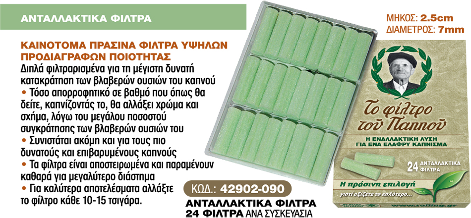 • Ανταλλακτικά φίλτρα πίπας τσιγάρου ΤΟΥ ΠΑΠΠΟΥ 42902-090 24x 1τμχ
